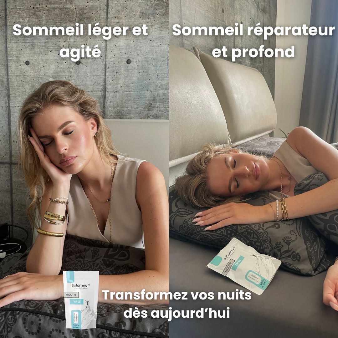 Profitez d'un sommeil ininterrompu et réparateur. En favorisant une respiration naturelle et silencieuse, Solomna transforme vos nuits en véritables moments de repos et de tranquillité, tant pour vous que pour votre entourage.